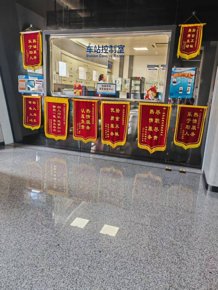 此外,该站还设有“创新谷号”主题列车,融入“山、泉、湖、河、城”元素,分多个主题车厢,并且工作人员服务周到,获市民送锦旗表扬。