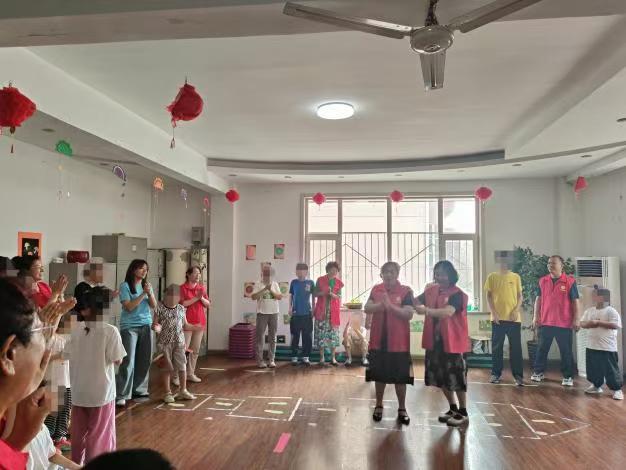 “左拍拍,右拍拍,小肩膀动起来!”志愿者们的口号声与孩子们的笑声交织在一起。当音乐突然加速时,不少孩子手忙脚乱,有的错把拍肩做成拍头,有的干脆跟着节奏蹦跳起来。