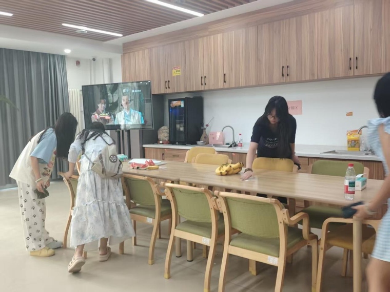 本次活动为37名老人提供了居室清洁、卫生维护和情感陪伴服务。养老中心公共活动区窗明几净,多处居室床铺被褥焕然一新,多位独居老人获得持续性交流机会。实践过程中,学生与老人自然亲密的互动场景,成为当日服务中心的生动风景。