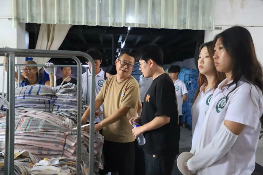 实践团成员们走进高阳县美华染织有限公司,感受当地纺织企业的稳健发展。该企业以棉印染精加工为主,通过初次加工后转运至厂完成二次加工,继而将半成品输送至终端工厂进行深度加工与销售,形成环环相扣的产业链条,展现出传统纺织企业的扎实根基与发展韧性。
