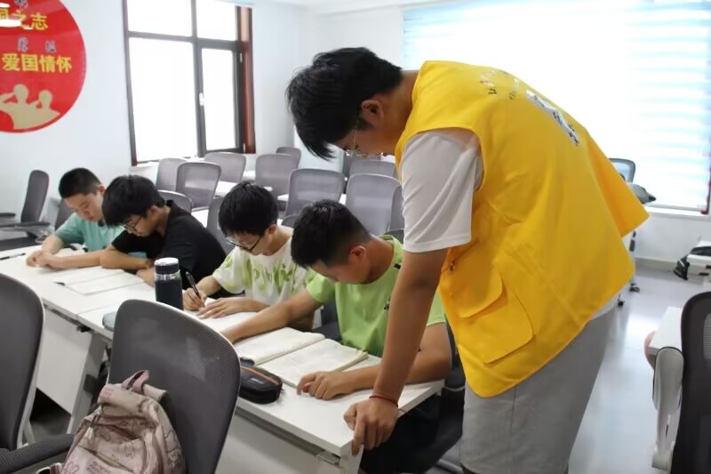 下午的初中生课程更具深度。志愿者简要梳理计算机发展脉络后,聚焦C语言基础,用“变量像抽屉”“语句像指令”的比喻,讲解数据类型与简单代码逻辑。课堂间隙的课余休息时间,大家通过乒乓球简单互动放松身心。课程结束后,志愿者们还专门针对初中生的暑期作业进行辅导,围绕物理公式应用、英语语法难点等进行细致讲解,对编程知识与课本内容的关联处加以点拨,帮助同学们兼顾课内学习与课外拓展。