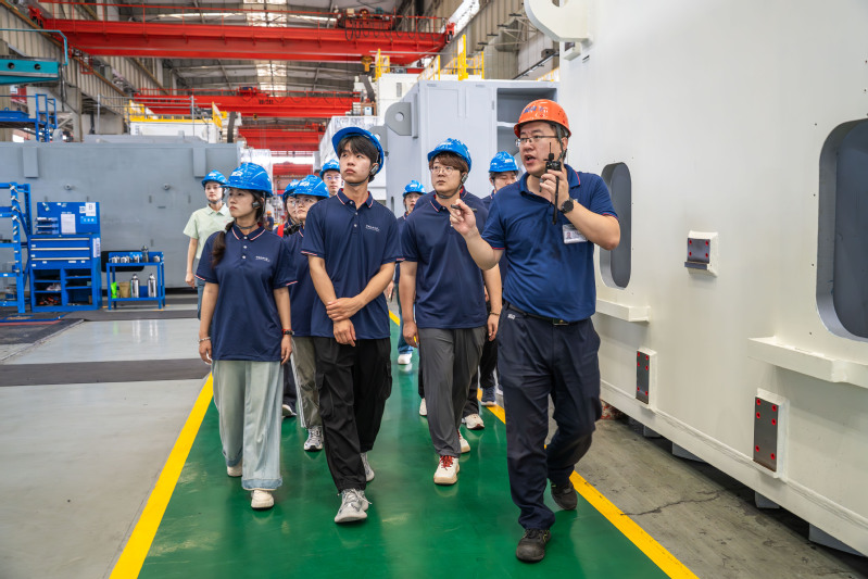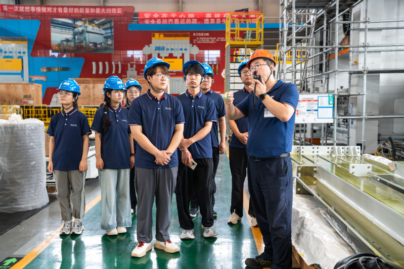 “课本上学的材料力学性能指标,在这里化作了钢铁巨兽。”实践队成员严鸿泰感慨道。在重型压力机装配车间,队员们近距离观察了世界领先的机械压力机装配过程。企业自主研发的智能控制系统让人印象深刻,“通过物联网技术,设备运行数据实时上传云端,实现远程运维。”这种将传统机械与信息技术深度融合的创新实践,为队员们打开了智能制造的认知视野。