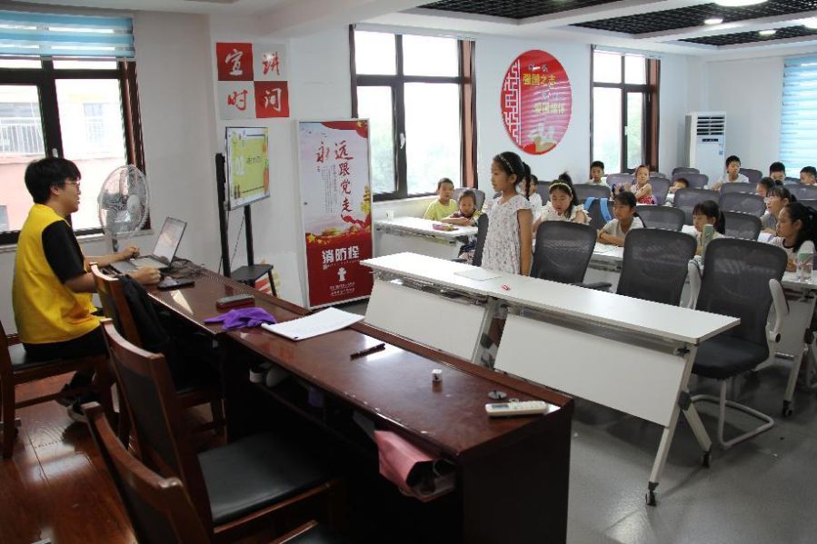 7月16日上午,E在岩外实践团成员来到南麻街道怡康社区党群服务中心,为社区内的小朋友们开展了一场关于人工智能的科普活动。