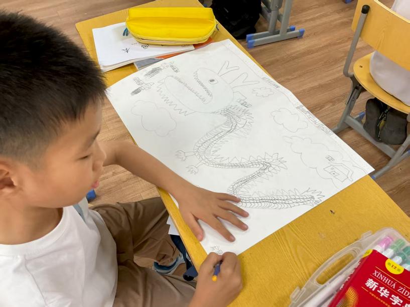 下午的画画活动中,张亚蒙发现有同学能够运用甲骨文,这让她很惊讶;在辅导暑假作业时,以往轻松欢乐地氛围瞬间变得紧张安静了许多,偶有走神,但最后同学们还是认真地完成了作业。