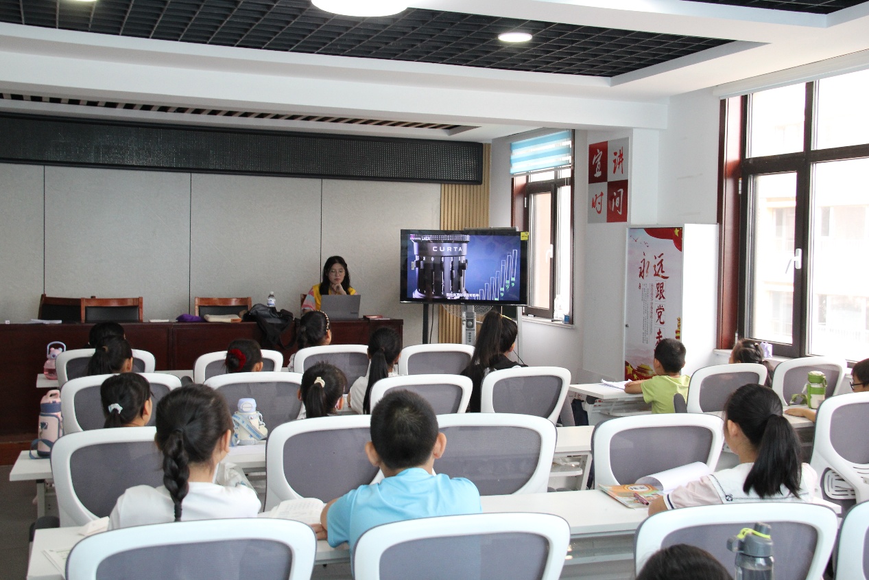 上午,实践团成员赵喜宁和米世悦面向小学生开设人工智能课。他们从日常场景切入,概括介绍人工智能在语音助手、智能推荐等方面的应用,梳理其从早期算法到现代智能系统的发展阶段。“人工智能就像工具,能帮我们做很多事,但也需要我们合理规范使用。”米世悦结合案例提醒孩子们注意信息安全。课堂上,有学生问“未来AI会比人聪明吗”,赵喜宁回应:“AI的智慧来自人类编程,它始终是人类的助手。”简单互动中,孩子们对人工智能的认知逐渐清晰。