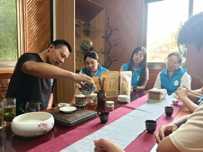 红茶工艺的创新更令我震撼:尹经理与张教授大胆引入“摇青”,让花香在叶片间绽放。从漫长摊晾到数小时发酵,再到机器的精准炒制,传统技艺的厚重与现代科技的精准在此交融。这不仅是制茶课,更是一堂生动的创新实践课,让我领悟到乡村振兴需要的就是这份尊重传统又勇于突破的“匠心”。