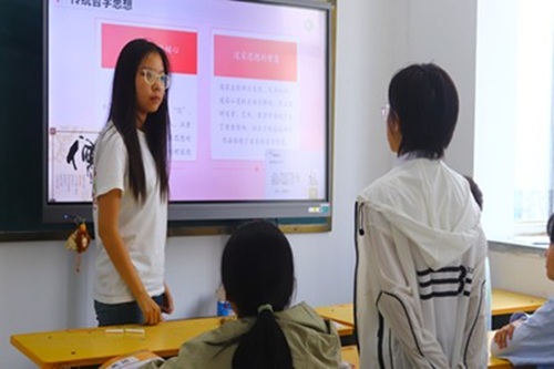 图为实践团成员讲课。山东理工大学贾凯宜提供