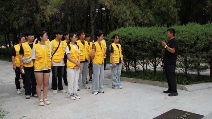 陵园深处,一座庄重朴素的合葬墓前,空气仿佛凝固。实践团全体成员垂首肃立,向长眠于此的1806名无名烈士默哀致敬。岁月湮没了他们的姓名与籍贯,却无法磨灭他们为这片土地流尽的最后一滴血所凝聚的崇高。讲解员的声音带着难以抑制的沉痛:“这些无名英烈,他们倒下时或许与我们一样年轻,一样对生活怀有无限憧憬。他们选择以无名之躯,筑起民族解放的基石。”细雨无声,松针垂露,年轻的心在静默中经历着前所未有的震撼与洗礼。这份超越时空的牺牲,如同沉甸甸的磐石,压在每个人的心头,又化为无声的誓言——唯有铭记,唯有奋发,方不负这以生命铺就的和平之路。