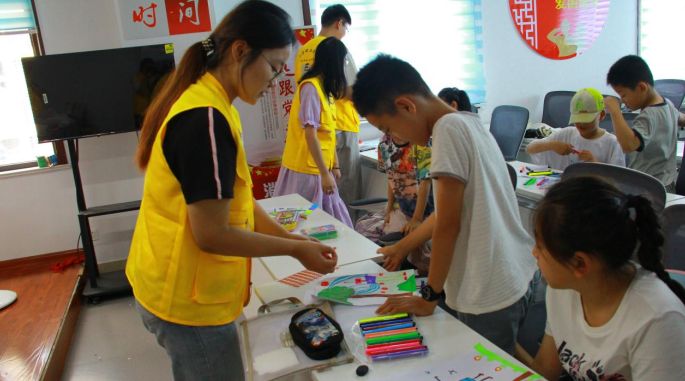 7月22日上午,淄博市沂源县南麻街道怡康社区党群服务中心内童声笑语、色彩飞扬。山东理工大学计算机科学与技术学院“E在岩外”社会实践团在此精心组织了一场主题为“我心目中的未来科技版图”的少儿绘画比赛,为社区儿童的暑期生活注入科技与艺术的活力。