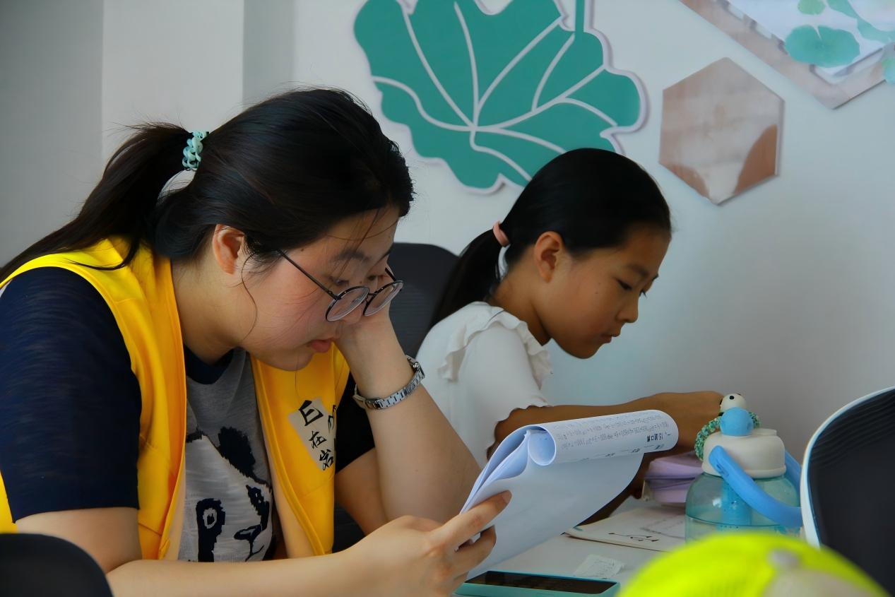 除此之外,实践团成员利用自习时间,辅导孩子们做作业,志愿者们耐心地为不同年级的学生解答课业难题,在讲解习题的同时倾听孩子们的心声,帮助他们建立学习信心,培养孩子们良好的学习习惯。