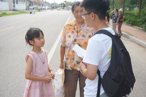 图为实践团成员与居民交谈 山东理工大学贾凯宜提供
