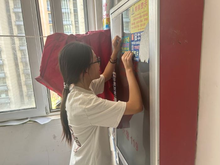 清理小广告同样是一项重要工作。各类小广告充斥在社区各处,实践团成员各有分工进行清理,维护了社区良好的卫生环境。