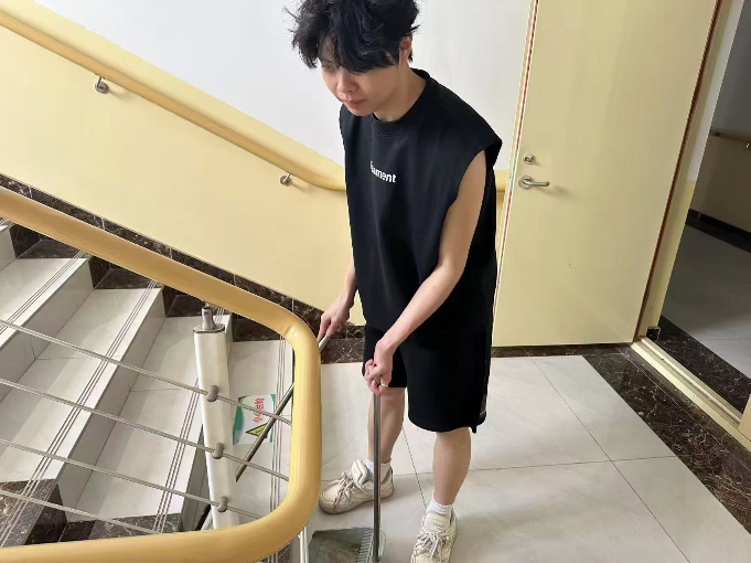 活动伊始,实践团成员们在养老院门口合影留念,成员们满怀敬意与热情,准备开始一天的志愿服务。通过这次实践,团队成员们更加深刻地感受到老年人群体在社会中的重要地位,并树立了更强的社会责任感。接着,实践团成员分工合作,开始了清洁工作。部分成员积极参与到楼道卫生的打扫中,不放过任何一个角落,确保老年人生活环境的干净整洁。