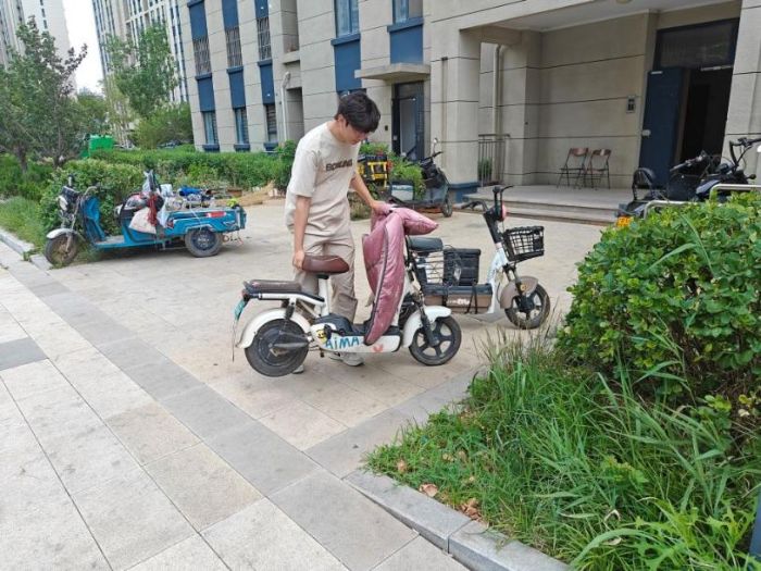 电动车秩序管理任务中,实践团将占道停放的车辆统一归置至充电区,矫正歪斜车辆并张贴规范停放示意图,消除主干道通行障碍及充电安全隐患。