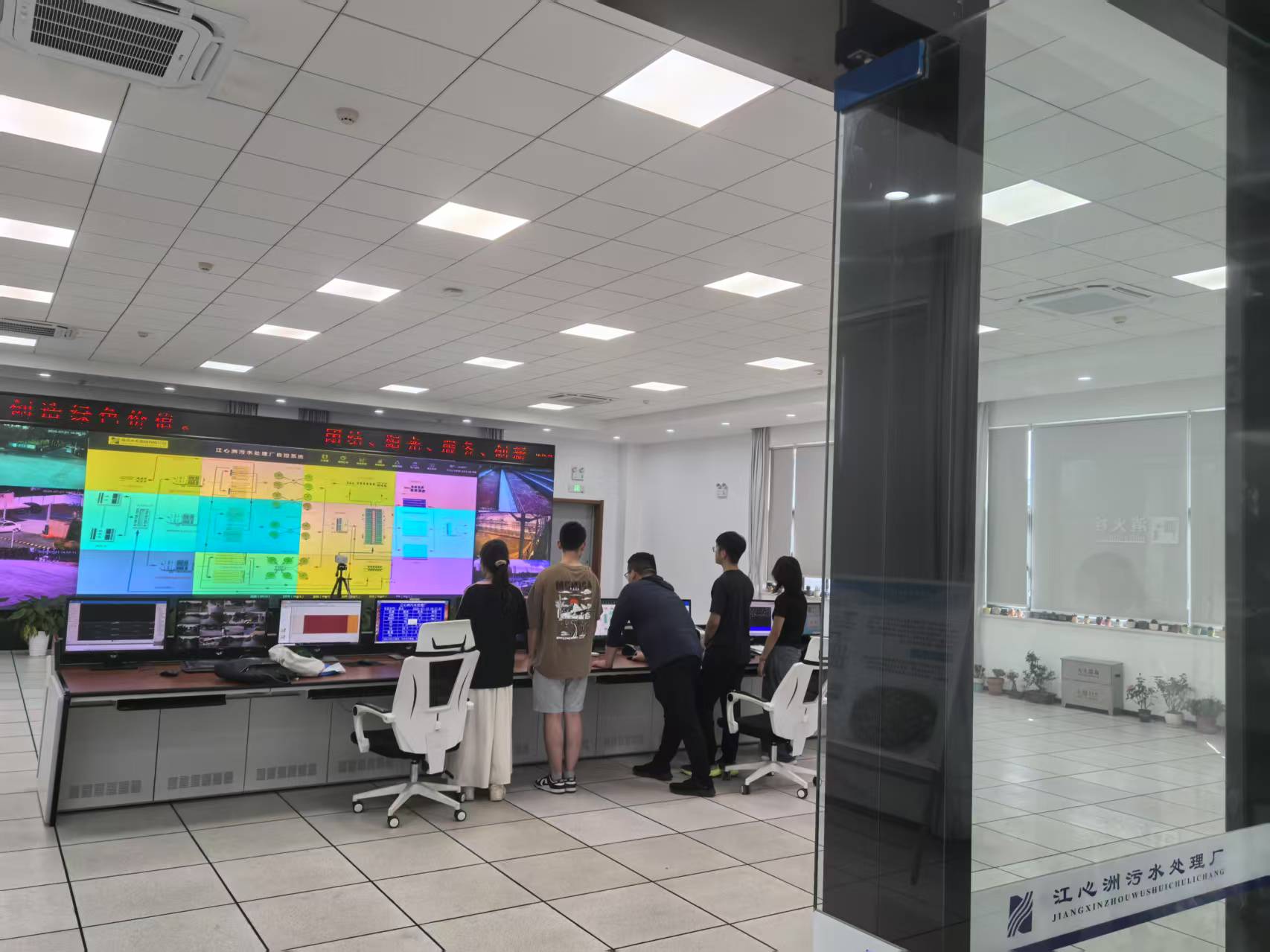 科技赋能产业发展。随着科技的进步,人工智能的发展,神经网络计算及程序规划逐渐用于各行各业。在江心洲污水处理厂智慧水务大厅中,主任带领团队成员观看智慧水务处理系统。调研重点聚焦新科技与水处理工艺的协同创新。中央控制室实时数据显示处理过程,对于污水处理的各环节各链条,如有数据异常,可以及时发现,立刻处理。团队成员中的电气自动化与计算机科学专业的同学对此发表了自己的意见:当代是一个科技的时代,只有紧紧抓住科技这个工具,用好科技,是为经济和产业谋转型,为人民谋福祉的一个关键因素。