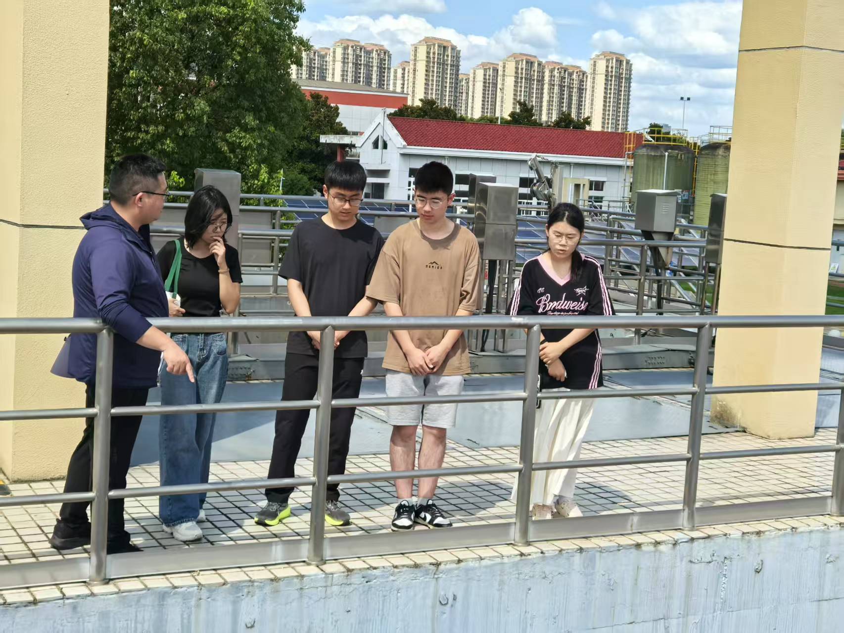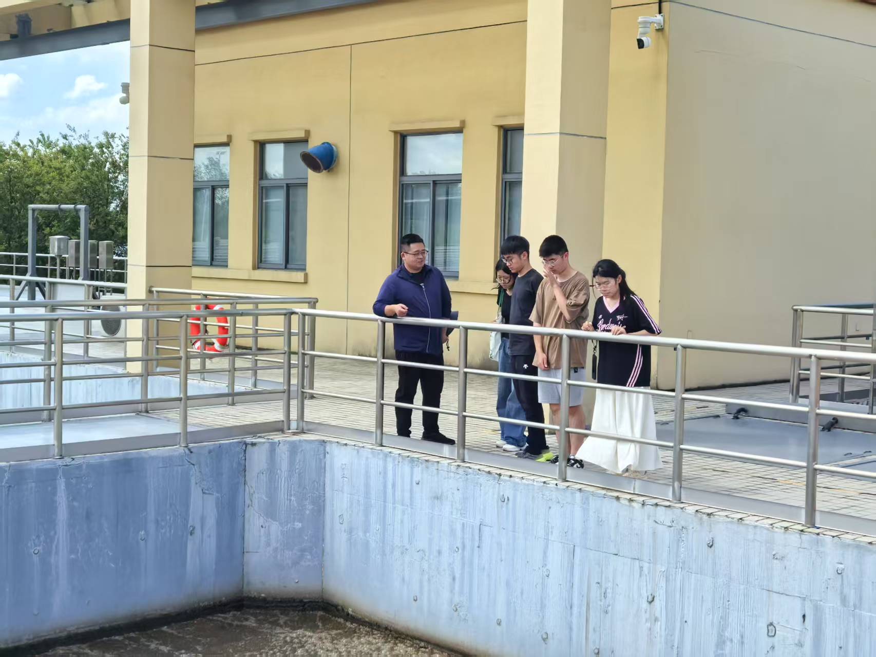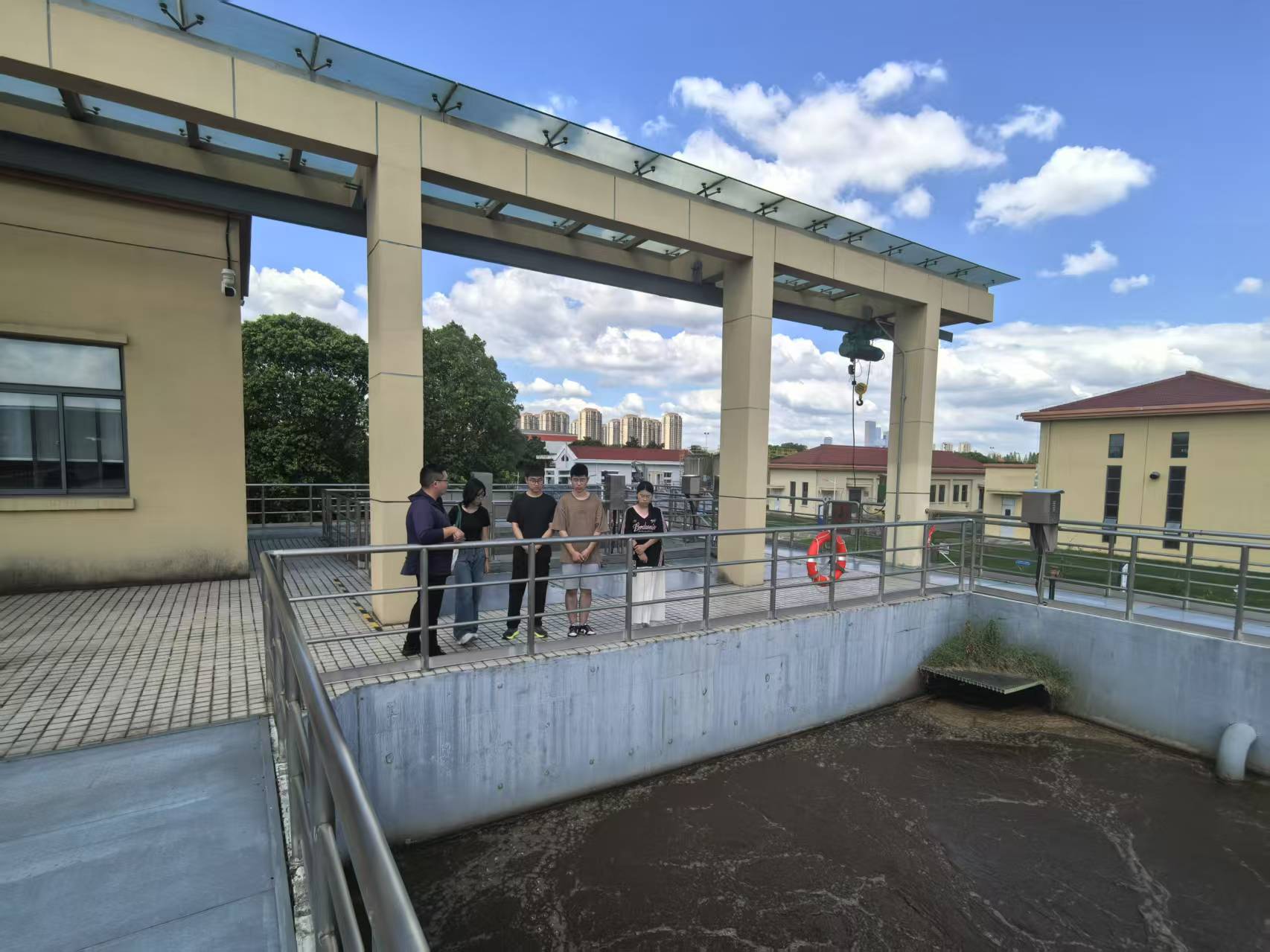 | 图: 团队成员于江心洲污水处理厂 |