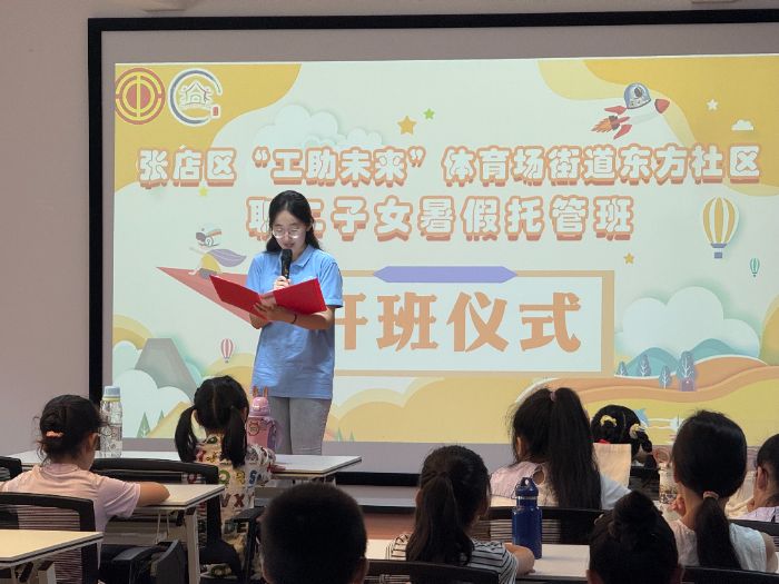 随后,实践团队长李雅雯登台发言。她从青年视角出发,详细介绍了实践团的具体规划、课程设置和预期目标,清晰地勾勒出本次暑期公益实践的行动路径,展现了青年学子的实践热情与责任担当。