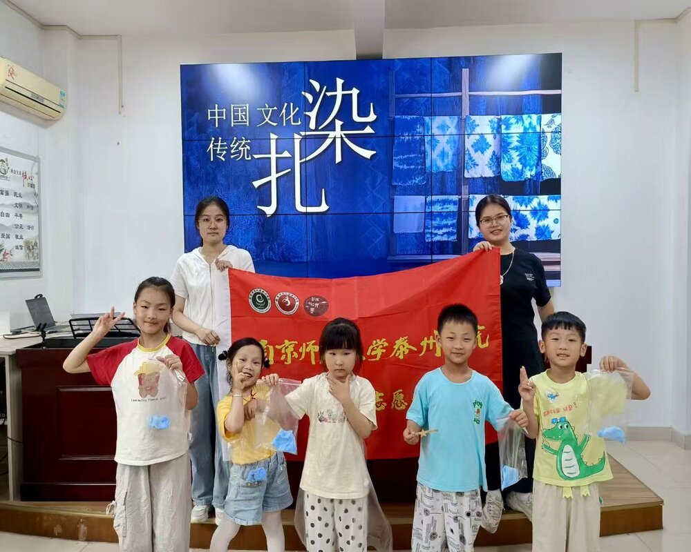 7月14日,南京师范大学泰州学院“红心研墨”暑期社会实践团队走进江苏省泰州市海陵区东岸社区正式开启“扎染的前世今生”实践活动。这次活动主要面向社区内的儿童,旨在通过趣味课程丰富他们的暑期生活,激发他们的学习兴趣。志愿者们结合了自己的专业知识和孩子们的兴趣,制定了一系列丰富多彩有关扎染的活动。