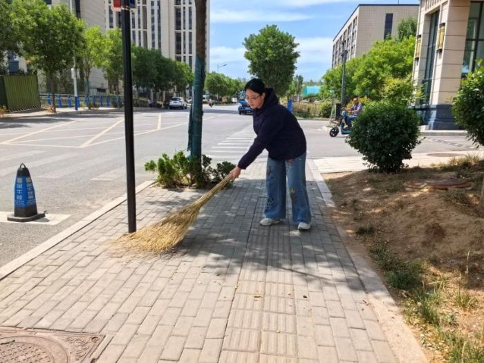 实践团对小区主干道及休闲区域的落叶实施集中清理。成员使用扫帚与环保垃圾袋高效清除落叶堆积物,保障人行通道安全畅通,维护公共区域景观整洁度。