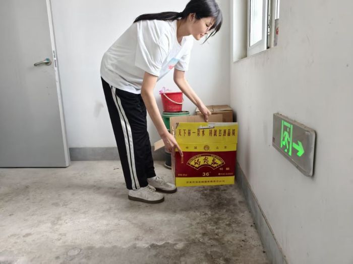 图为实践团成员清理楼道杂物
