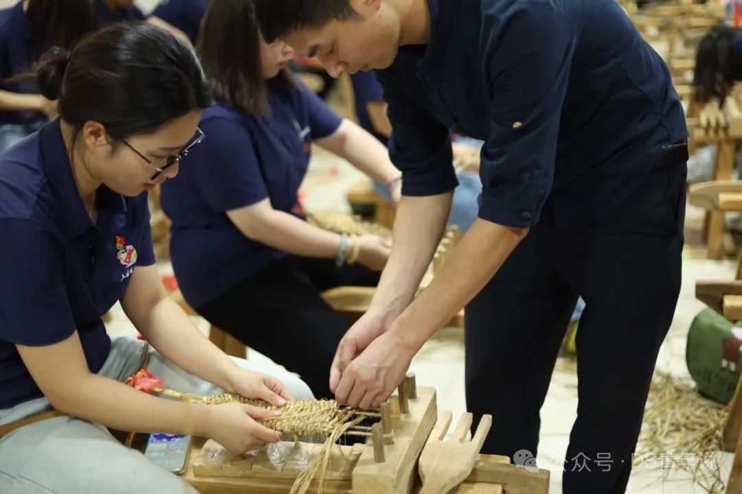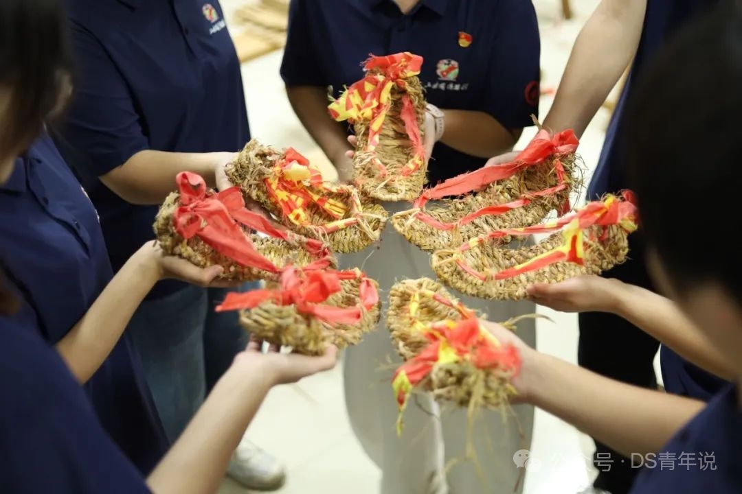 队员们返程后,迅速转入实践活动下半场,在大厅开展小型义诊活动。作为医药院校学子,充分发挥专业优势,为其他实践队队员提供血压测量服务,耐心告知测量结果与健康建议,用贴心服务传递医药人的温情,也让“学以致用、服务他人”的理念落地生根。下午14时30分,队员们开启“学编草鞋”红色体验活动。现场鞋耙子、木锤、腰弓、鞋板、鞋叉等编鞋工具引人注目,在老师的讲解下,大家先了解草鞋背后的革命故事,跟着老师学习搓草绳、固定鞋型、穿插编织。从生疏地摆弄工具,到逐渐掌握编鞋技巧,大家在指尖的忙碌中,真切体会到当年红军艰苦奋斗精神。“艰苦奋斗”不是口号,而是融入日常的行动力量。一根稻草看似普通,编进的却是革命年代的智慧与坚韧。