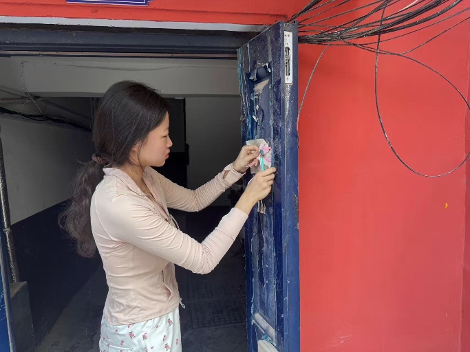 为让居民更具有安全意识,实践团成员推进社区安全治理行动。通过张贴安全知识宣传单向居民宣传安全知识,涵盖消防安全、用电安全、防诈骗、交通安全等与居民生活息息相关的领域。宣传单设计简洁明了,以图文结合的方式将复杂的安全知识转化为易懂的小贴士,方便不同年龄段的人阅读。