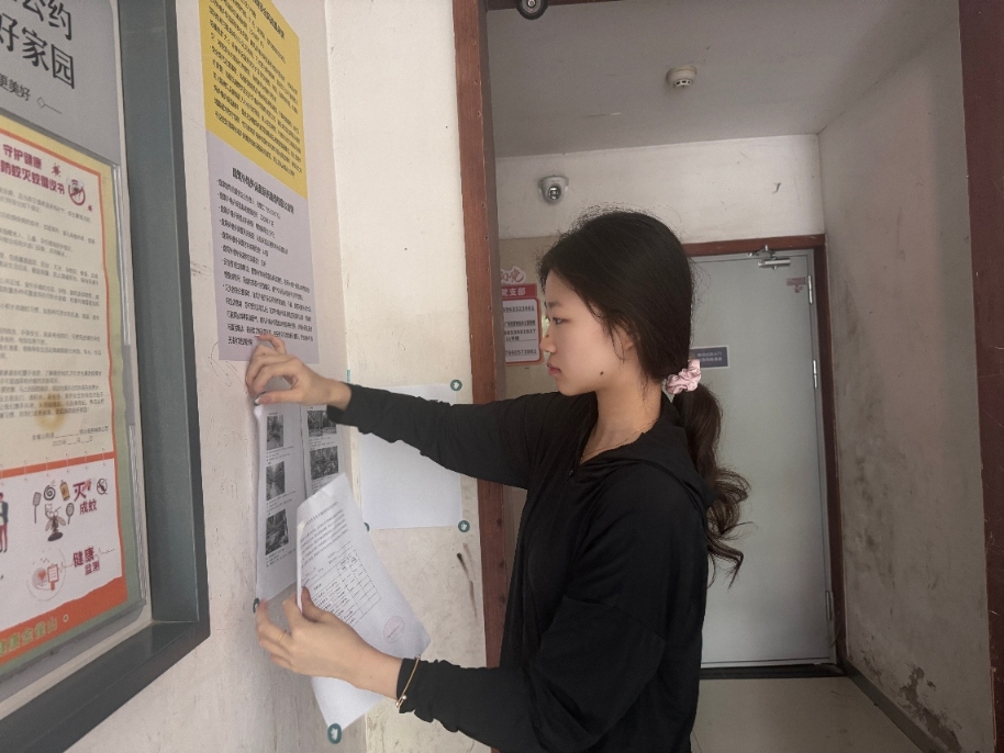在进行实践的30天中,成员定时进行清扫社区卫生,清除不合规范广告,清理垃圾、规整杂物。对于社区街道、电梯、单元门进行大扫除,此次活动改善了社区环境,为共建美好家园添力。