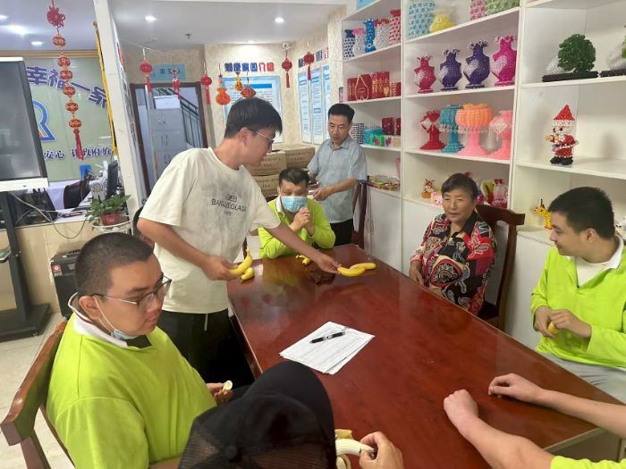 实践团成员带着精心准备的水果走进如康家园。当香蕉递到残障朋友的手中,笑容在彼此脸上绽开。这是一份清甜,是青春爱心的传递,让残障朋友在夏日里,真切感受到社会关怀的温度,也让“互助共融”的美好,在小小的分享时刻悄然生长。
