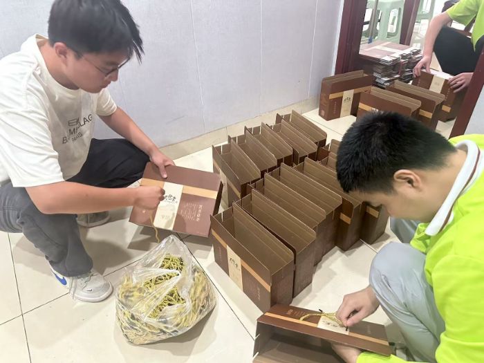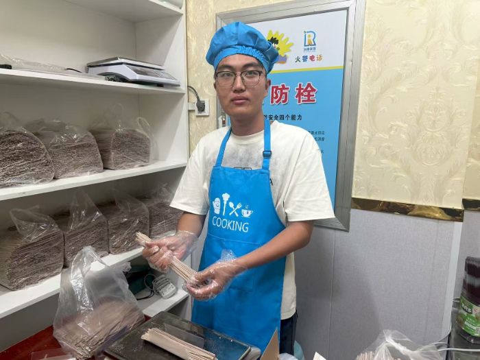 团队成员投身如康家园的面条分装工作。戴好帽、系上围裙,双手细致地将面条规整装袋,每一份都饱含认真。这不仅是简单的分装,更是用行动为残障伙伴的生活添一份助力,让温暖随着面条传递,以青春微光,照亮助残之路,让互助的美好在这一包包面条里落地生根。
