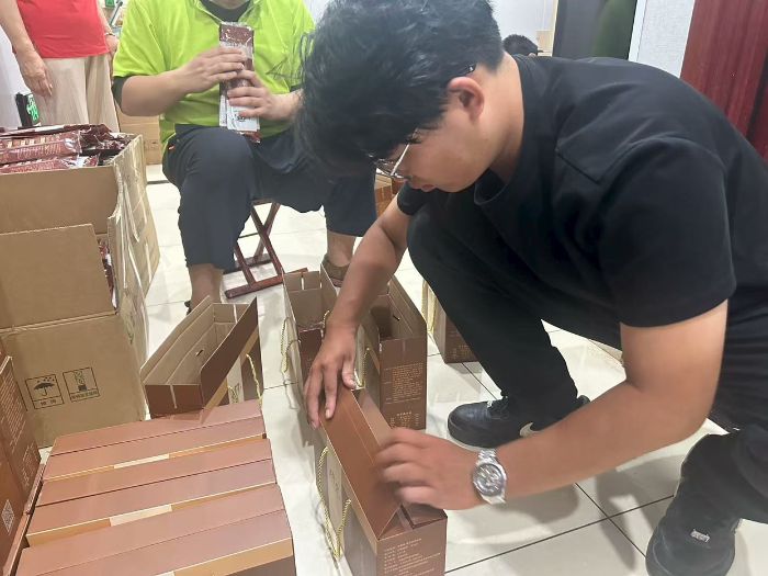社会实践的行程里,我们走进残障人士帮扶车间,投身忙碌的包装工作。眼前,团队成员分工有序,一位身着黑衣的青年正专注组装礼盒,双手细致地折叠、拼接,身旁堆积的半成品,在协作中逐渐变成规整的礼盒。残障伙伴们虽面临身体挑战,却以超乎想象的认真与坚韧,投入每一项任务。我们一起封装、整理、搬运,他们对生活的热爱、对工作的执着,化作无声力量,感染着我们。
