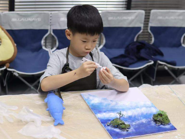 该团队深度参与的“围棋启蒙小课堂”在每周三下午举行,是实践亮点。首堂课着重基础规则,主讲老师讲解落子、提子后,实践队员随即组织孩子们在小棋盘上进行“虎口”与“禁入点”的识别练习。面对一位常把棋子弄洒的小女孩,一位队员创新性地提出小约定:“每正确放稳一颗棋子,就能点亮一颗小星星”,通过游戏化的方式,让她在遵守规则中体会到乐趣。后续活动巧妙结合粘土手工,主题为“夏日印象”。队员们与孩子们共同构思创作,捏制出冰淇淋、艳阳、小风扇等生动形象。活动中,一位内向的小女孩多次尝试捏圆未果,面露沮丧。一位细心的队员立刻上前,轻柔地握住她的小手,两人一同揉捏塑形。合作之下,一块形态虽不完美却充满童趣的“西瓜”逐渐诞生。小女孩眼中瞬间绽放的光彩,无声诉说着创造带来的巨大满足与快乐。
