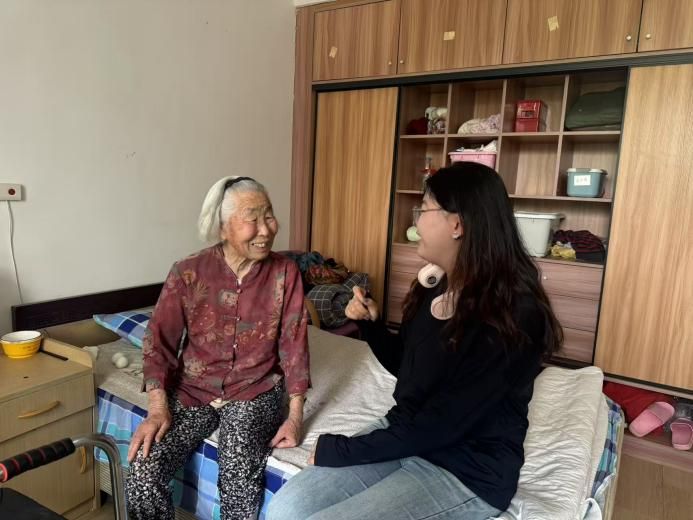 在养老服务中心的各个角落,都能看到实践团成员与老人谈心的温馨画面。吴向东坐在老人身边,倾听着老人讲述过去的故事,分享着自己的生活点滴。宋柔为老人按摩肩颈,放松他们的身心。