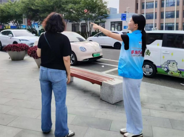 在服务过程中,志愿者经常被居民询问方向,她则热情指引,不厌其烦地伸手指路,用实际行动诠释了“有问必答、贴心服务”的精神。居民在她的帮助下快速找到目的地,纷纷表达感谢。