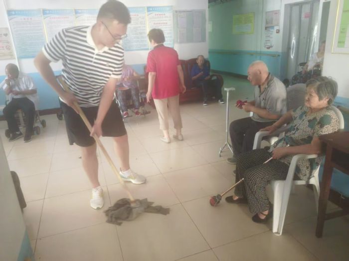 实践团成员们,有的为老人打扫房间卫生,整理床铺、清扫地面,为老人创造整洁舒适的生活环境。部分成员则协助老人进行康复训练,耐心指导老人完成简单肢体运动,帮助其增强身体机能。