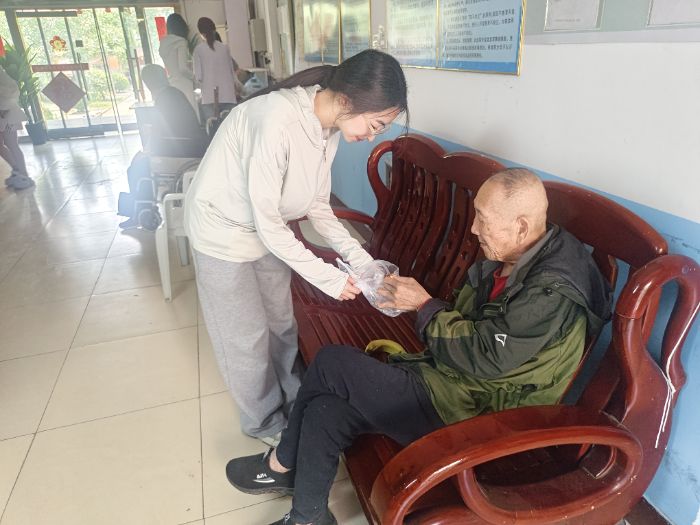 在照顾老人日常起居方面,蔡梓文细心地喂老人吃东西,关注每一位老人的饮食健康,确保他们吃得安心、舒心;盛新晨将养老院内的图书进行分类整理、归置上架,为老人们营造出一个整洁有序的阅读环境,方便他们日常阅读,丰富精神世界。