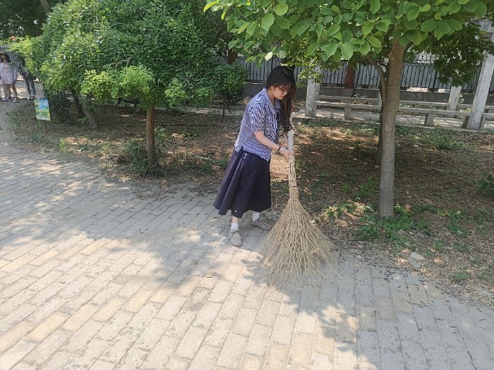 图为实践团成员程千芸清扫地面