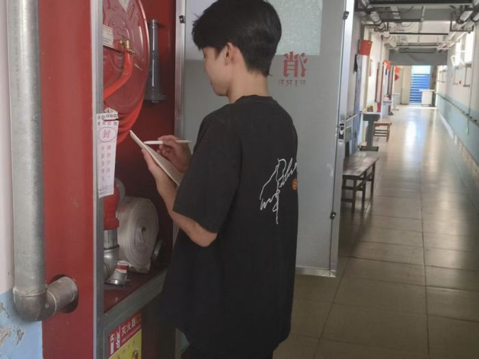 在关注老人生活需求的同时,王玉乾还对养老院的消防措施进行了全面检查。仔细排查了消防设施的配备情况、疏散通道的畅通性以及消防标识的清晰度。通过实地检查,实践团发现一些潜在的安全隐患,并及时与养老院负责人沟通,提出改进建议。