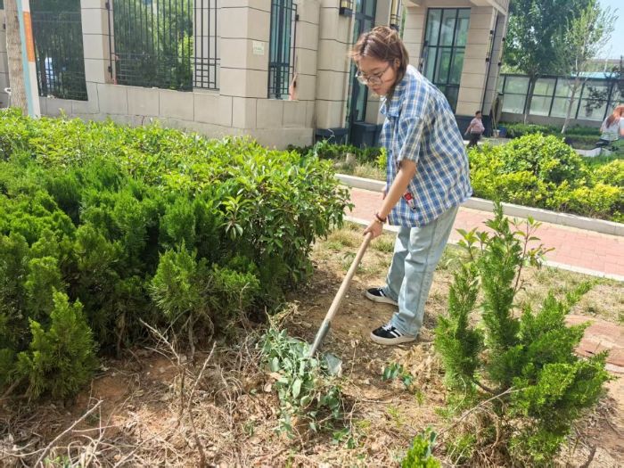 在绿化维护方面,实践团成员积极参与草坪锄草工作。面对杂草丛生的草坪,成员们不畏烈日用锄头和双手清理杂草。他们的努力让草坪重新恢复了整齐有序,为社区的绿化景观贡献了力量。