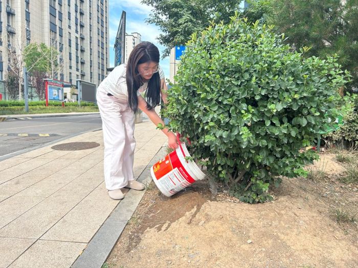考虑到夏季植物生长需要充足水分,实践团成员主动承担起给植物浇水的任务。他们提着水桶,穿梭在社区的各个角落,为花草树木送去生命之水。日常清扫工作也在有条不紊地进行着。实践团成员们拿起扫帚,清扫社区道路上的落叶、灰尘等杂物,让社区道路始终保持干净通畅,方便居民出行。