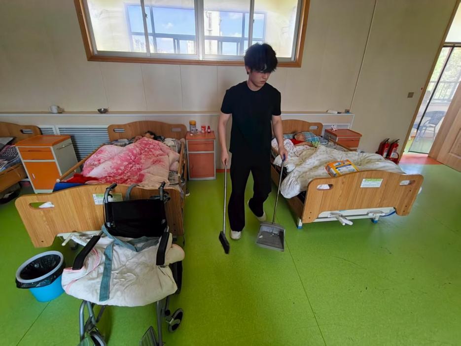 此外,实践团成员还特意为敬老院里行动不便的老人打扫房间。大家轻手轻脚地走进老人房间,细心擦拭窗台的灰尘,整理叠放好衣物,将散落的杂物归置整齐,连床底、桌角这些不易留意的角落都擦拭得干干净净。