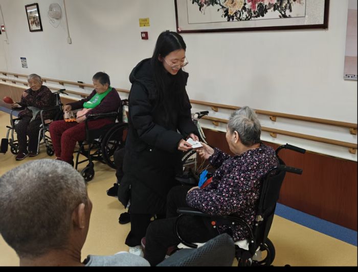 实践团成员亲手制作了贺卡,并在卡片上写下真挚的祝福。他们将贺卡送到每一位老人手中,接过贺卡时老人脸上都洋溢着笑容,感受到了来自年轻一代的尊重与关怀。