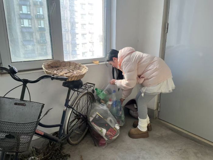 图为实践团成员清理楼道杂物