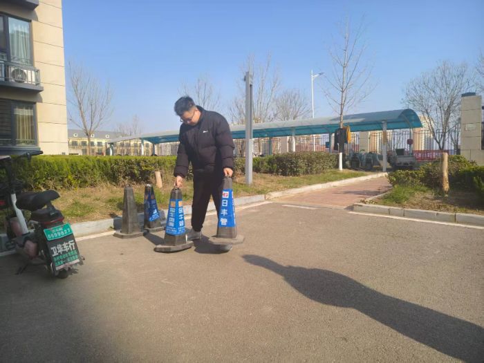 实践团摆放了交通反光锥桶。在社区交叉路口、弯道及人流量较大区域,他们设置了反光锥桶以警示车辆和行人。这些锥桶增强了夜间能见度,有助于规范交通流线,减少事故风险,从而强化了社区交通安全管理。