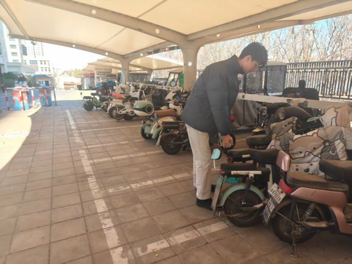 实践团成员进行了电动车摆放工作。针对社区内电动车随意停放、占用通道的现象,成员们将分散的车辆逐一搬运至指定停车区域,并排列整齐。这一行动确保了消防通道和行人道路的畅通,消除了安全隐患,同时也优化了社区空间利用效率。