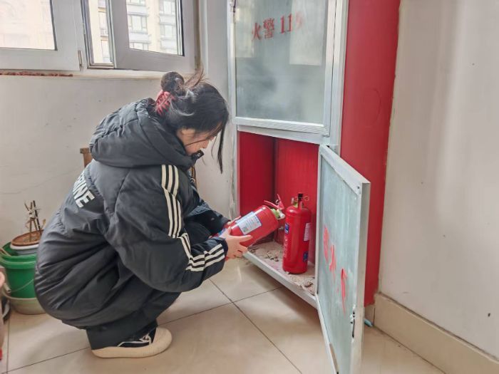 图为实践团成员检查消防设施