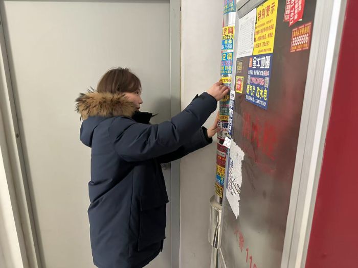 实践团成员对社区内张贴的各类小广告进行了集中清理。成员们携带铲刀、喷壶等工具,对楼道墙面、电线杆、公告栏等区域的非法广告进行逐一铲除,恢复社区整洁面貌,为居民营造清爽的居住环境。