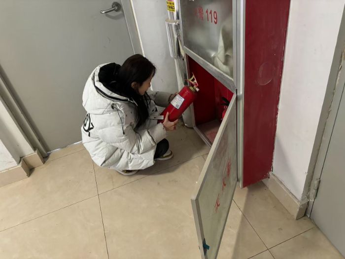 实践团成员对社区内配置的灭火器进行了全面检查。成员们逐一核对灭火器生产日期、有效期及压力指示情况,记录问题设备并及时反馈社区物业,确保消防器材处于良好备用状态。