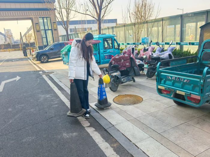 结合社区安全管理需求,实践团成员还对部分公共区域的交通反光锥桶进行了规范摆放。他们将这些警示标识放置在小区出入口、道路转弯等关键位置,以提醒往来车辆注意减速与避让,为维护社区内部交通秩序贡献了一份力量。