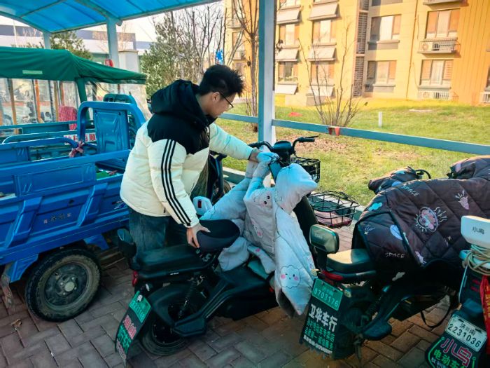 图为实践团成员整理电动车