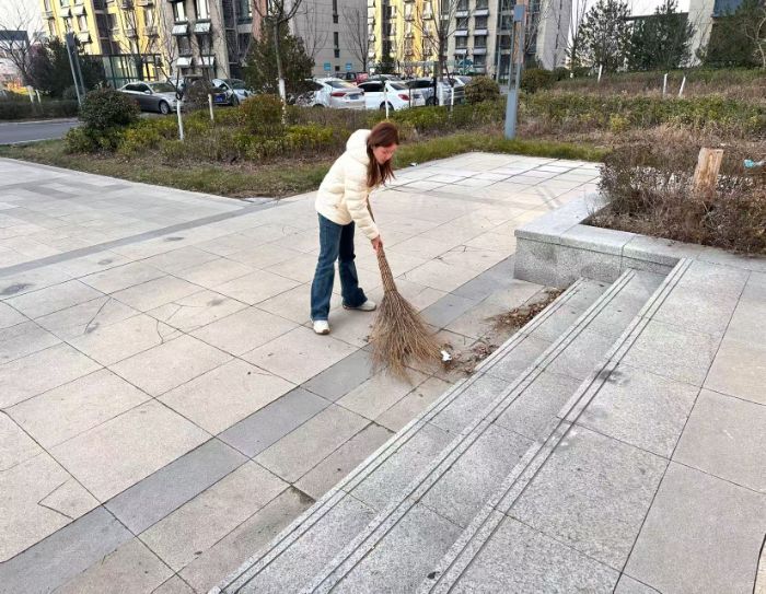 针对小区部分路面存在的尘土、落叶等问题,实践团成员开展了清扫作业。他们分工协作,利用扫帚等工具,对主干道、广场及单元门附近的路面进行了认真打扫,减少了扬尘,提升了社区公共区域的洁净程度。